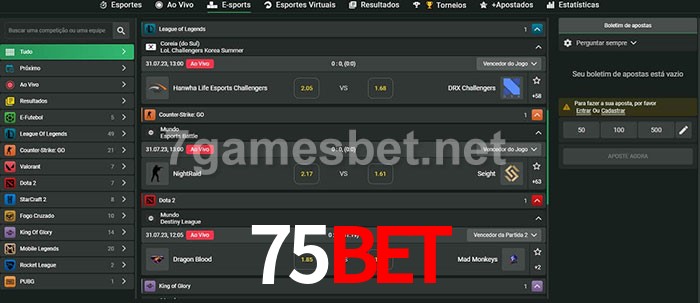 O 75bet oferece uma grande seleção de opções de apostas em e-sports com probabilidades competitivas